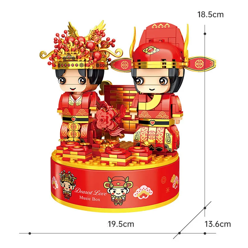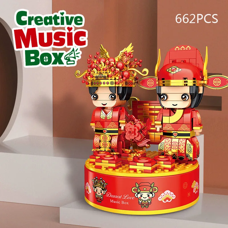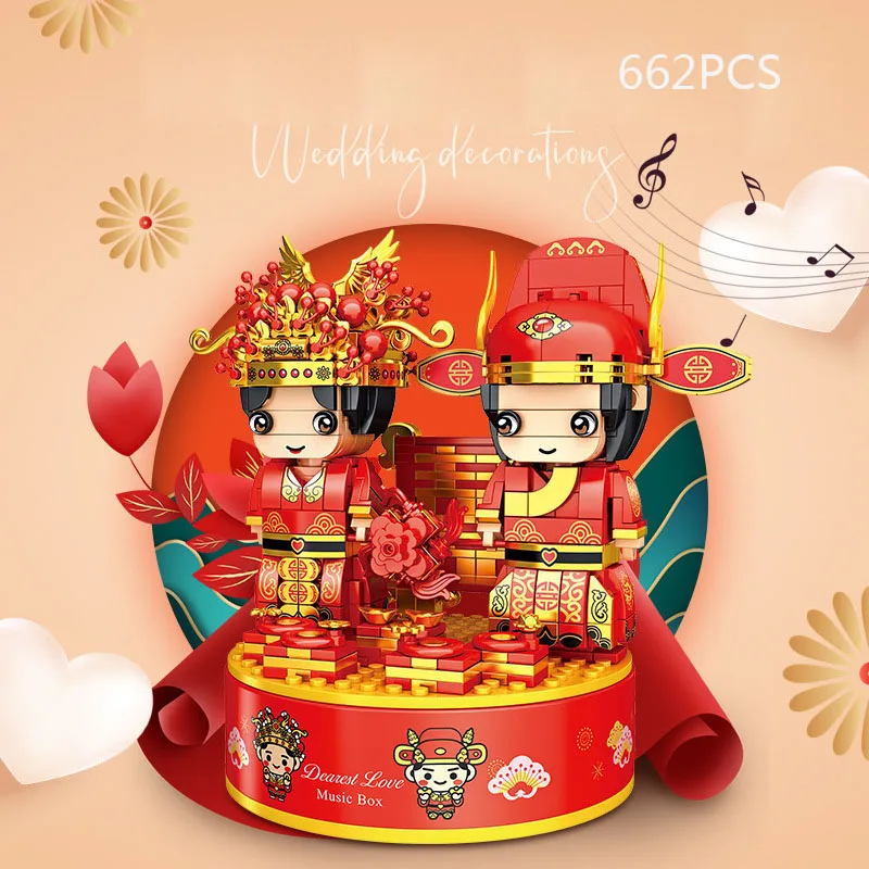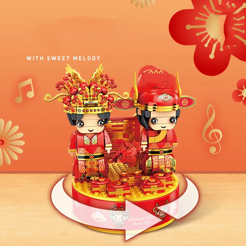 תיבת מוסיקה יצירתית בלוק ראש גדול דמויות בנייה סט מודל סיני חתונה לבנים צעצועים חינוכיים לילדים מתנות