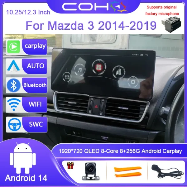 12.3 אינץ '/ 10.25 אינץ' עבור מאזדה 3 2014-2019 מערכת רכב כפולה מולטימדיה רדיו לרכב אנדרואיד 14 אוקטה קור 8G + 256G GPS 4G WIFI