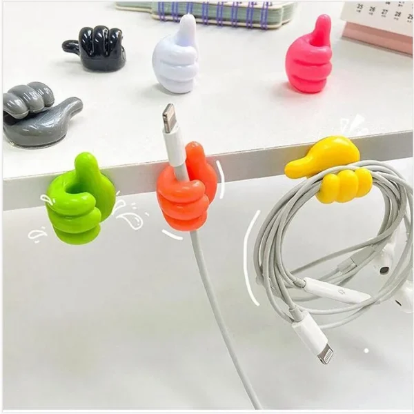 20 יחידות וו קישוט קיר דביק עצמי, וו תלייה יצירתי מסיליקון בצורת אגודל, קליפס לכבל נתונים למשרד ולבית, מארגן חוטים לשולחן