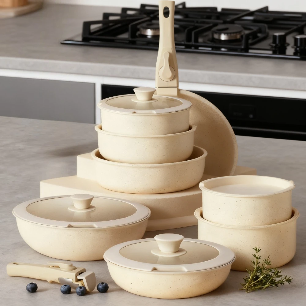 20 יחידות סט כלי בישול מחבת לא מדביקה עם ידיות ניתנות להסרה תנור מדיח כלים בטוח ללא PFOA קל לניקוי כלי מטבח
