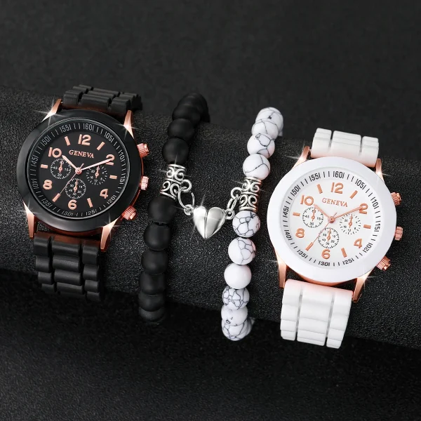 דף הבית » חנות » 4 זוגות שעונים אופנתיים לנשים בערבית שעון קוורץ רגיל עם רצועת סיליקון שעונים מגנטיים בצורת לב