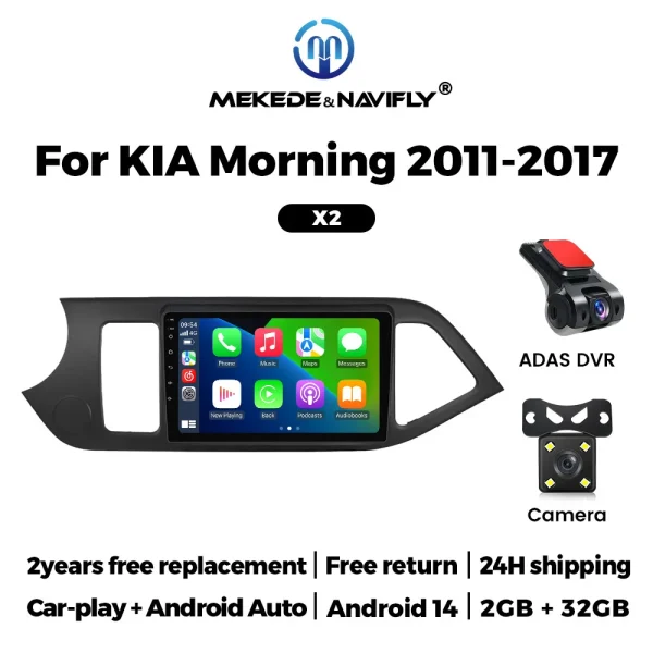 MEKEDE 9 אינץ 'אנדרואיד 14 רדיו לרכב עבור KIA Morning 2 Picanto 2011-2017 ניווט GPS WIFI BT אלחוטי Carplay Android Auto