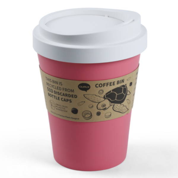 QUALY פח בעיצוב כוס קפה – ורוד פסטל