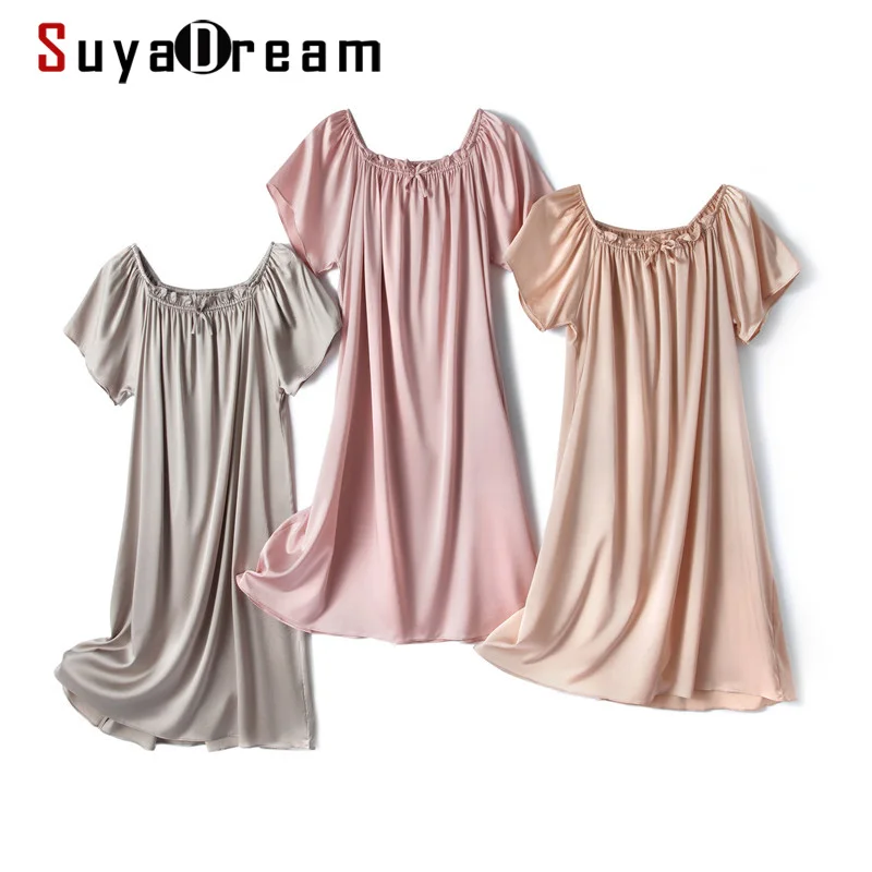 SuyaDream נשים משי Sleepdress אמיתי משי מיני אורך שינה שמלת 2021 בת שרוולים Nightgrowns שמפניה ורוד