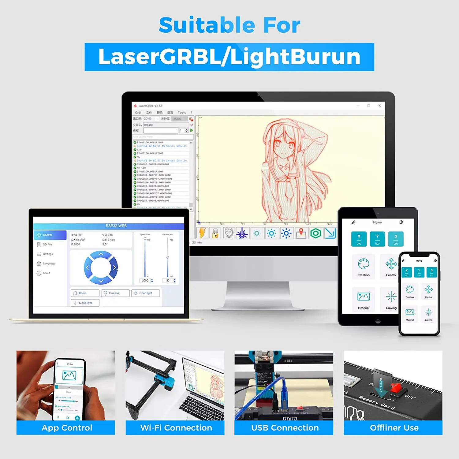 Twotrees TTS-55 מכונת חיתוך לייזר עבור עץ/עור/מתכת/אקרילית לייזר 3D מדפסת 40w/80w